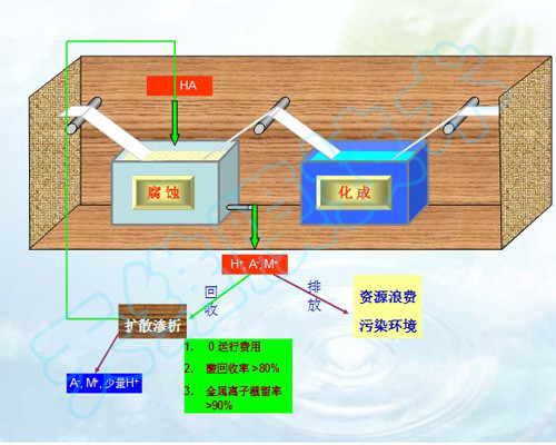 化成箔腐蝕加工過程中,產(chǎn)生大量的廢酸。這些廢酸的排放(即使采用石灰中和),不僅造成資源浪費(fèi),使產(chǎn)品成本增加,而且還導(dǎo)致嚴(yán)重的環(huán)境污染,影響和制約了企業(yè)的生存和發(fā)展。以一個(gè)中型的低壓電極箔生產(chǎn)企業(yè)為例,每天排放15—20%的廢鹽酸30噸,相當(dāng)于浪費(fèi)15—20噸31%的成品酸。采用擴(kuò)散滲析技術(shù),可將其中的鹽酸有效回收,每月節(jié)約鹽酸產(chǎn)生的經(jīng)濟(jì)效益在20萬元以上,同時(shí)還解決了環(huán)境污染問題,經(jīng)濟(jì)效益和社會(huì)效益十分可觀。